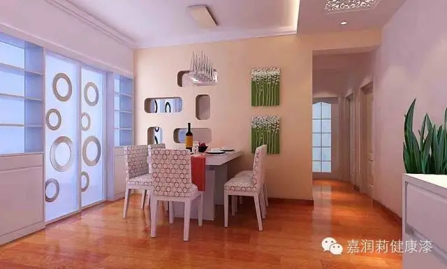 使用率高的餐厅要求使用有较高光泽度的**涂料,这样便于清洗。如果非正式的餐厅位于厨房内或面向厨房,您可以考虑使用单色调的配色方案.或者与厨房内的旅色搭配起来。在这种情况下也可以使用互补色的配色方案,与相邻的空间形成和谐、一致的色彩搭配。餐厅是使用高档装饰面漆的理想空间,深而浓重的色彩往往被用来创造富有动感的餐厅。用装饰涂料模仿出优推的质地,使餐厅的琦面显得更加稚致。增加生动性。通过多种富有创造性的设计,可以使餐厅充满活力,例如用装饰性面漆涂别琦面的搜盖物、重点琦面或天花板,以打造一间色彩艳丽、图案生动的餐厅。